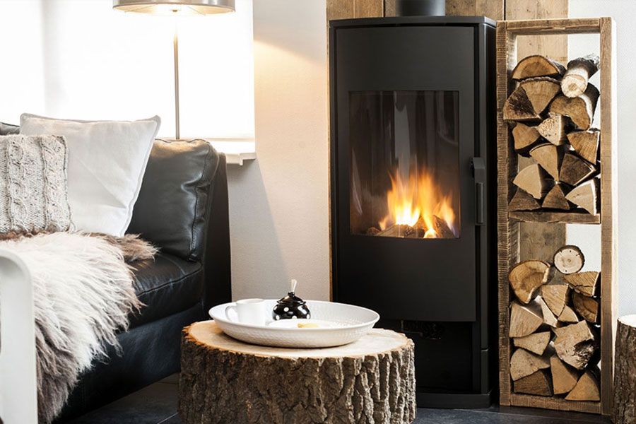 De mantel van de Faber Vaska is optioneel te bekleden met speksteen, waardoor de kachel een andere uitstraling krijgt en de warmte langer vast houdt.