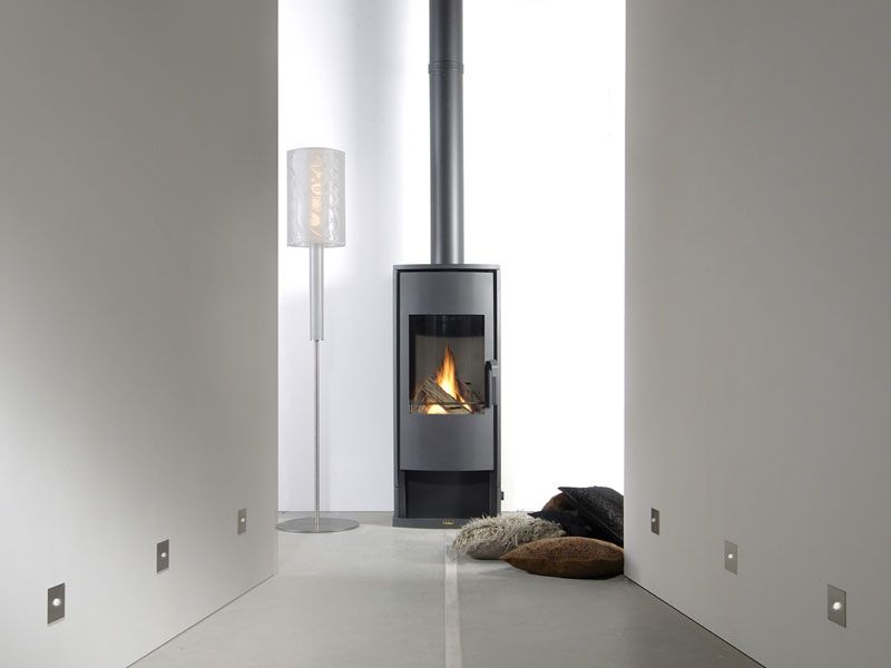 Gaskachel Vaska is een elegante en moderne vrijstaande gaskachel. De kachel is leverbaar met een logburner. De logburner geeft het effect of de houtstammen echt branden doordat de brander onder de houtstammen is geplaatst.