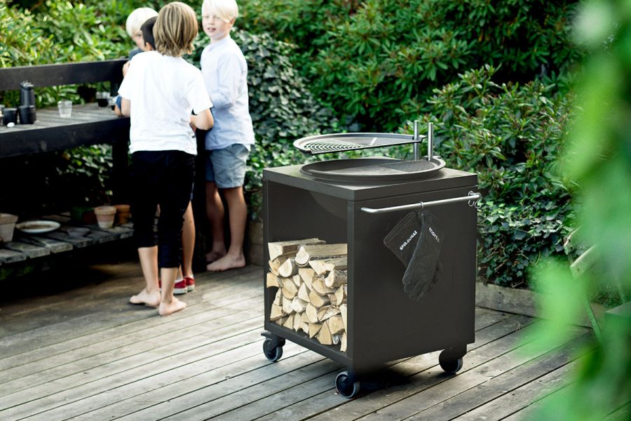 Morsø Grill ’17 presteert even goed op houtskool, briketten of gewoon hout. Na het koken kunnen de plaat en het rooster opzij gedraaid om de ‘kom’ te gebruiken als vuurkorf.
